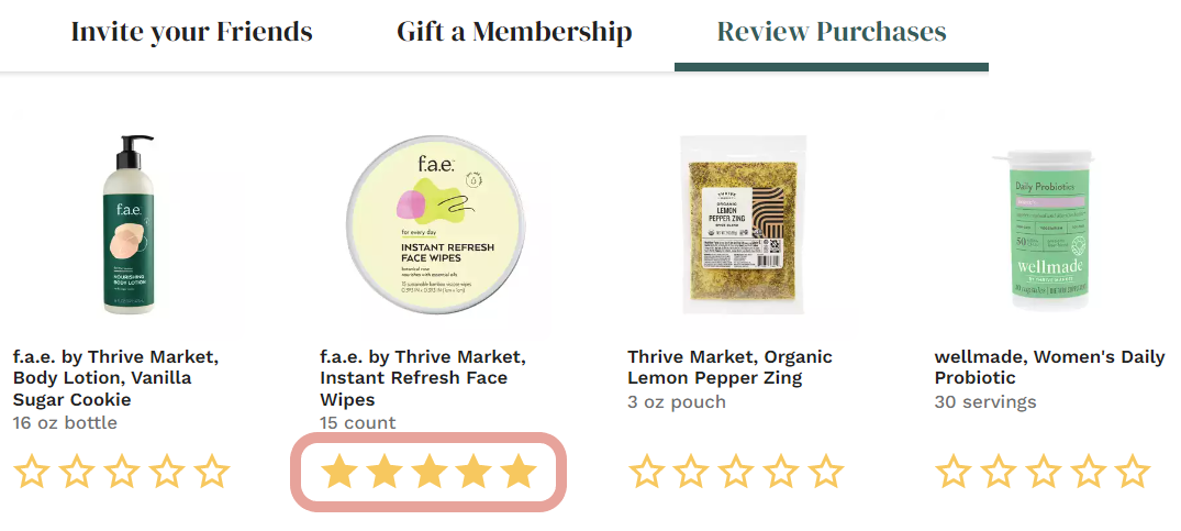 You can find all of your previous purchases to review on your Account page. Selecting a star rating under a product will open the review form for you to submit. If your review is eligible for Thrive Cash, you will receive an email once your review is posted.