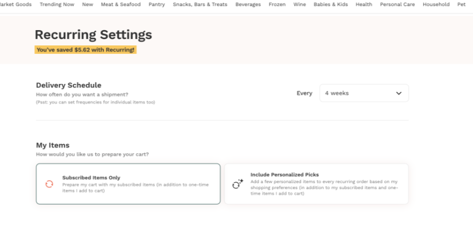 To turn off Personalized Picks, visit this page here https://thrivemarket.com/Recurring