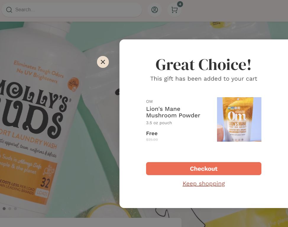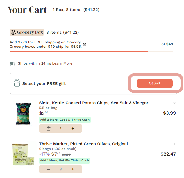 You'll also have the option to select a gift in your cart. Just click "Select" and any available gifts will pop up.
