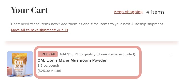 If you still do not see the free gift in your cart, check for other conditions that might apply (buy one and get one free, buy a specific brand product and get a free gift, etc.).